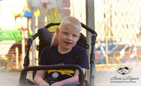 Четыре года в лечении было упущено! В настоящее время Данил может говорить только слово «мама», пытается ходить с опорой.