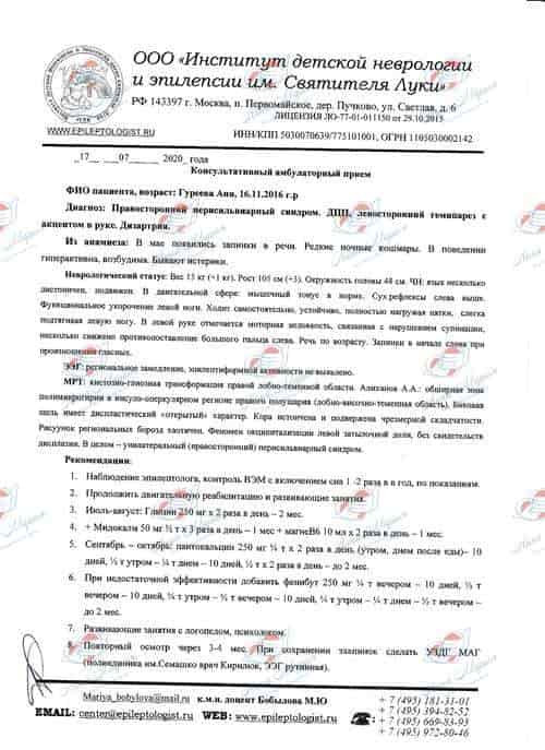 В 4 месяца прошла первая в жизни реабилитация и обследование ребенка. Медицинское обследование подтвердило, что образовалась киста, и клетки мозга на этом месте атрофированы. Невролог дал надежду, что девочка может скомпенсироваться, но для этого необходима постоянная реабилитация.