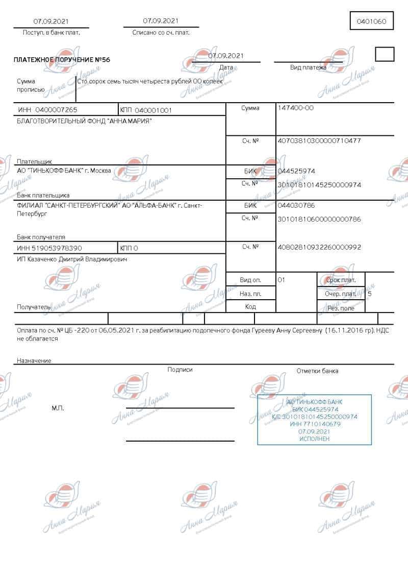 О себе: Гуреева Аня из г.Куровское Московской области в будущем хочет стать артисткой. Девочка любит петь, танцевать, насколько это возможно. У Ани ограничены движения в левых конечностях из-за спастики, ей трудно управлять левой рукой. Анечке плохо даются навыки самообслуживания, есть проблемы с речью. Родители и специалисты уверены, что все эти трудности девочка сможет преодолеть.