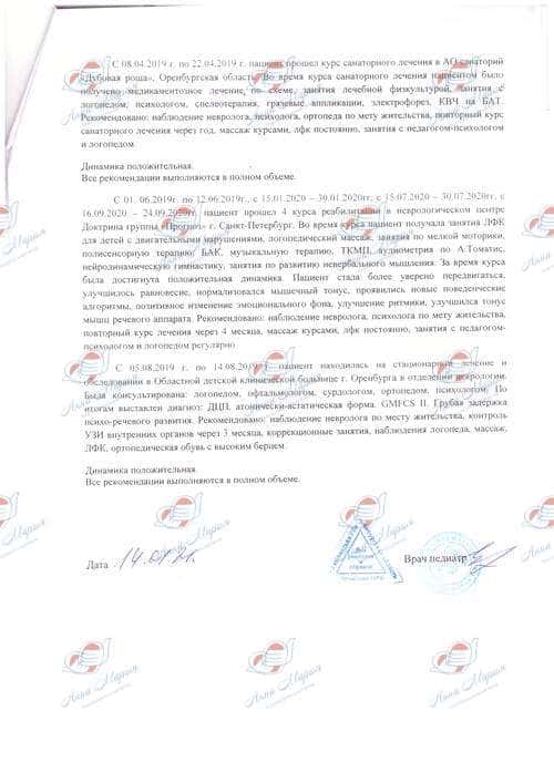 До полных двух лет реабилитировать нашу крошку никто не брался из-за непонятной ситуации с легкими и дыханием. С двух лет мы начали усиленно заниматься восстановлением нашей девочки. Прошли шесть курсов реабилитации в реацентре «Самара», курс реабилитации в МЦ «Сакура» и РЦ «Колыбель Сердец», 4 курса в МЦ «Прогноз». Кроме этого, постоянно делаем массаж и проходим курсы медикаментозного лечения.