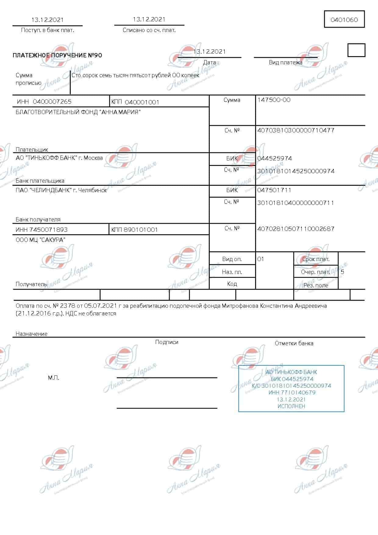 Инфузионная терапия препаратом Элевидис в клинике Medcare Women & Children’s Hospital (Aster DM Healthcare), Дубай, ОАЭ, 2 901 907,00 долларов США. Частичный сбор – 10 000 000,00 (десять миллионов) рублей.