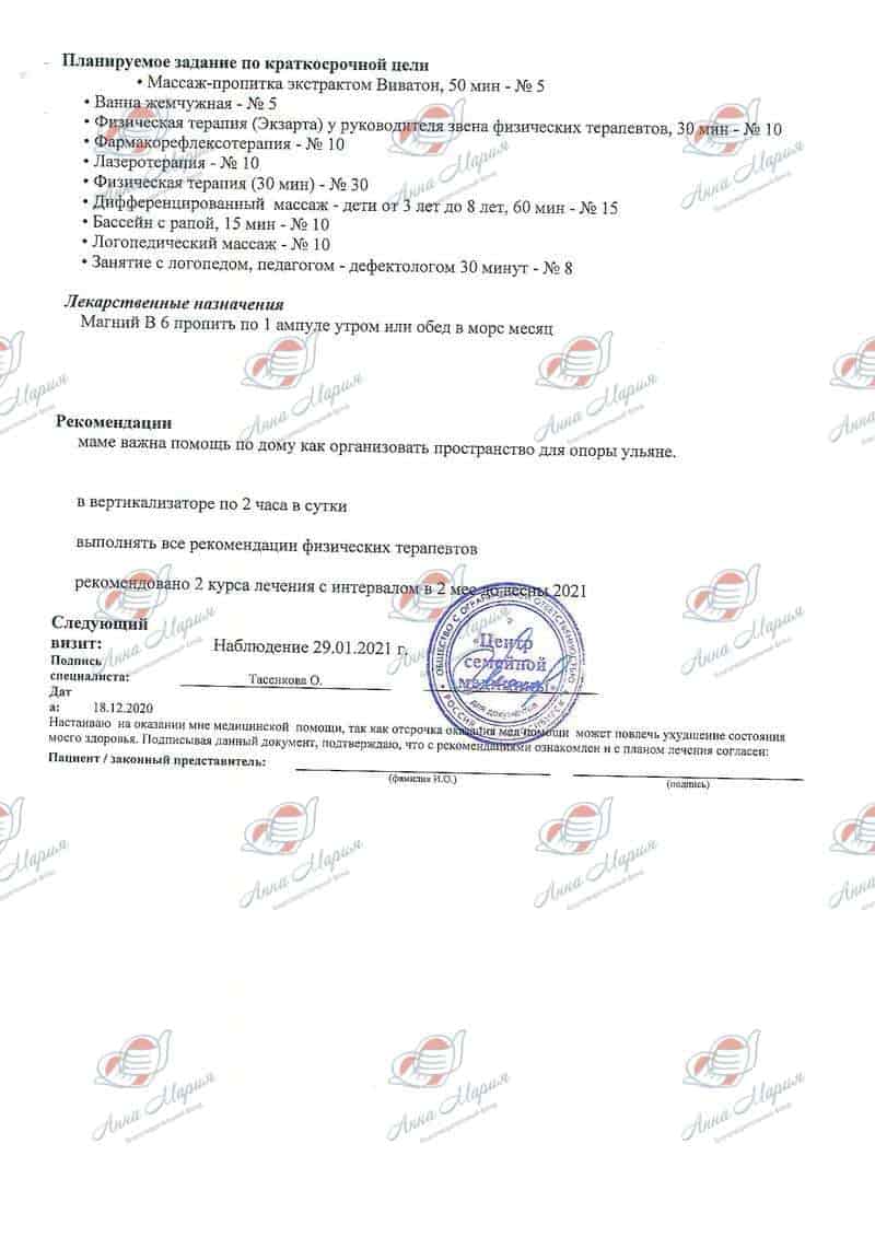В этом центре мы с мужем сами получили много новых знаний. Нас научили правильно носить и брать Ульяну на руки, позиционировать ребенка в быту, научили некоторым упражнением из Войта-терапии и показали много новых и эффективных упражнений для занятий дома. Нам подобрали медикаментозную терапию, которая улучшила сон Ульяны. И теперь ребенок больше не просыпается каждый день в 5 утра.