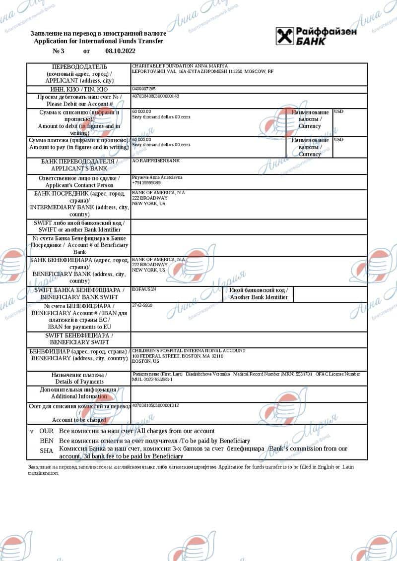 Мама Вероники получила лицензию OFAC. В соответствии с ней переводы в клинику может осуществлять как сама мама, так и благотворительные фонды, которые помогают Веронике.