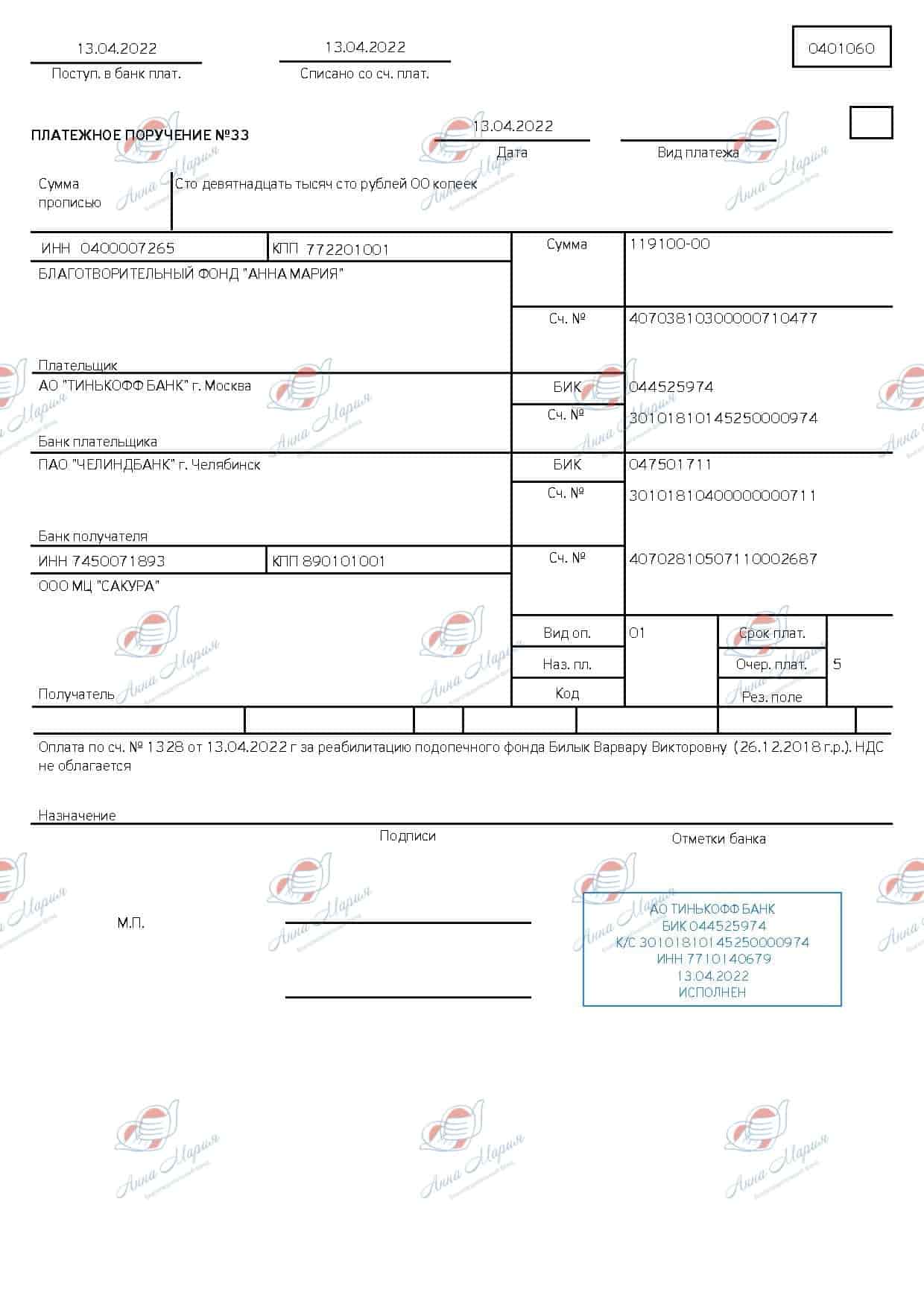 На данный момент Варвара делает свои первые шаги. Мама уверена, что специалисты МЦ «Сакура» смогут помочь ее дочери. Поэтому она решила обратиться в благотворительный фонд за помощью в оплате реабилитации. Поможем Варваре вместе!