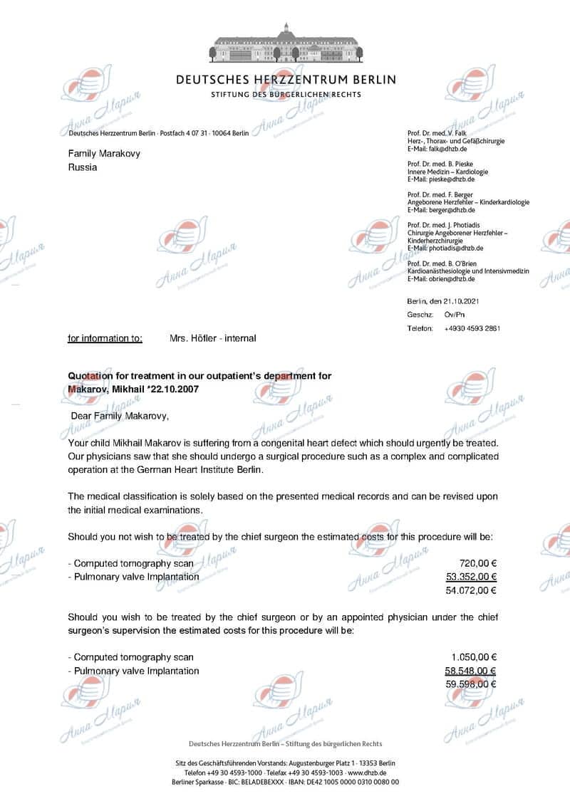 Что будем делать: Операция в кардиоцентре DEUTSCHES HERZZENTRUM BERLIN, г. Берлин.