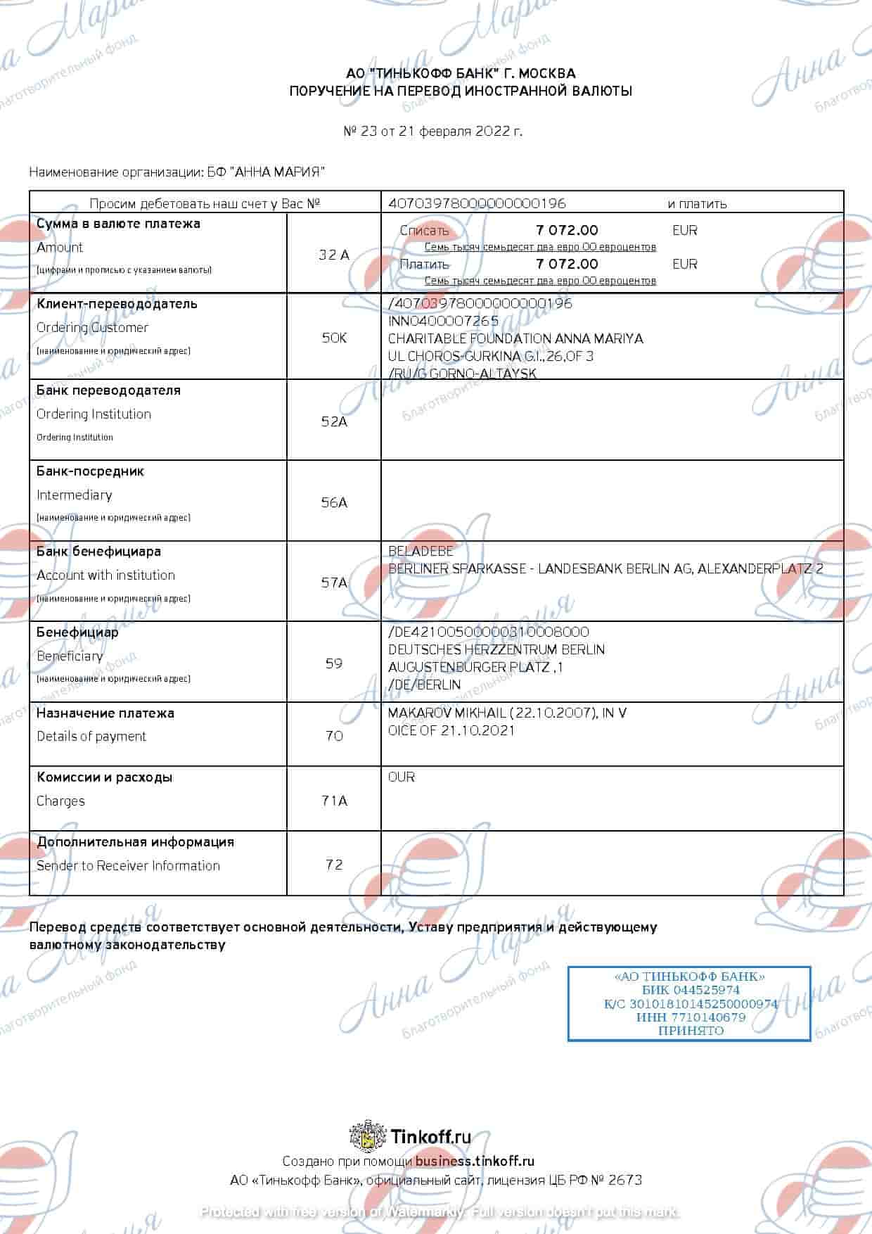 Миша третий ребёнок в семье. С его рождения мама была вынуждена прекратить работать, чтобы заниматься его здоровьем и развитием. Старшие дочери учатся в университете. Многодетную семью содержит отец, но потянуть счёт в 54072 евро, выставленный клиникой, не в силах. Врачи рекомендовали обратиться в ту же клинику, где Мише была успешно проведена радикальная коррекция в возрасте полутора лет. Берлинский кардиоцентр готов принять Мишу, как только будут собраны средства на его лечение. Очень просим вас помочь нам собрать необходимую сумму, чтобы Миша мог и дальше жить здоровой и счастливой жизнью».