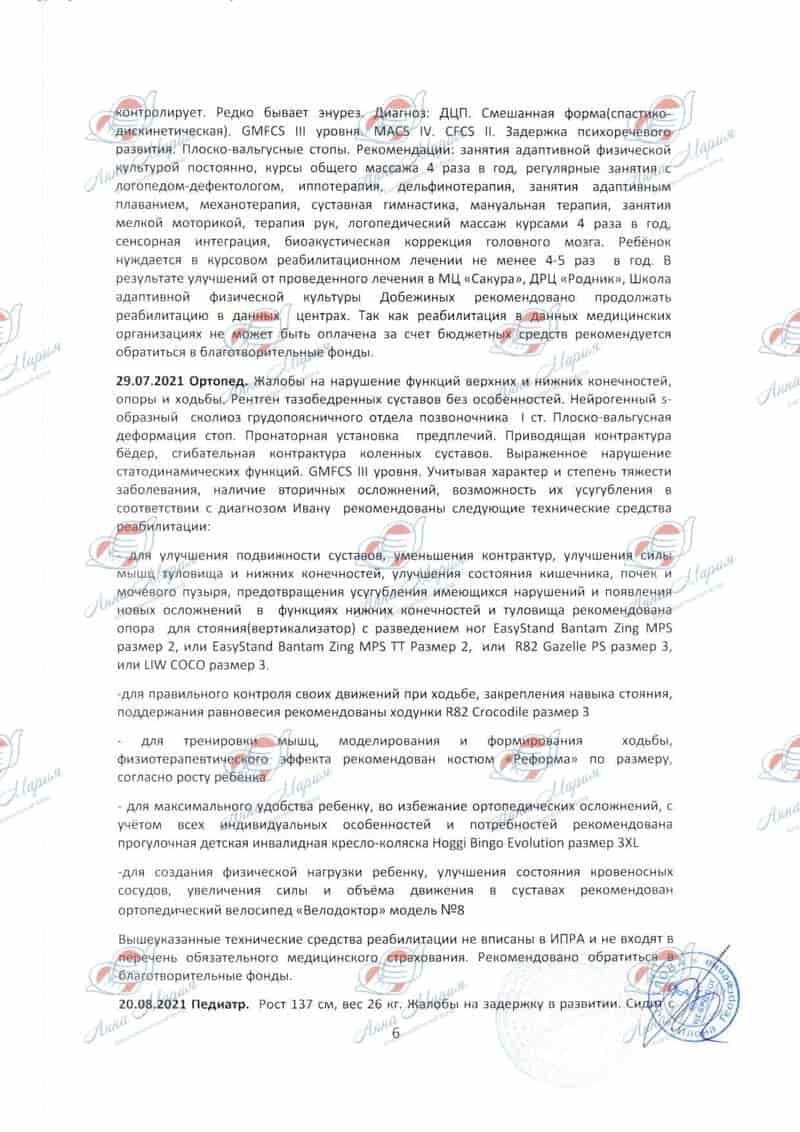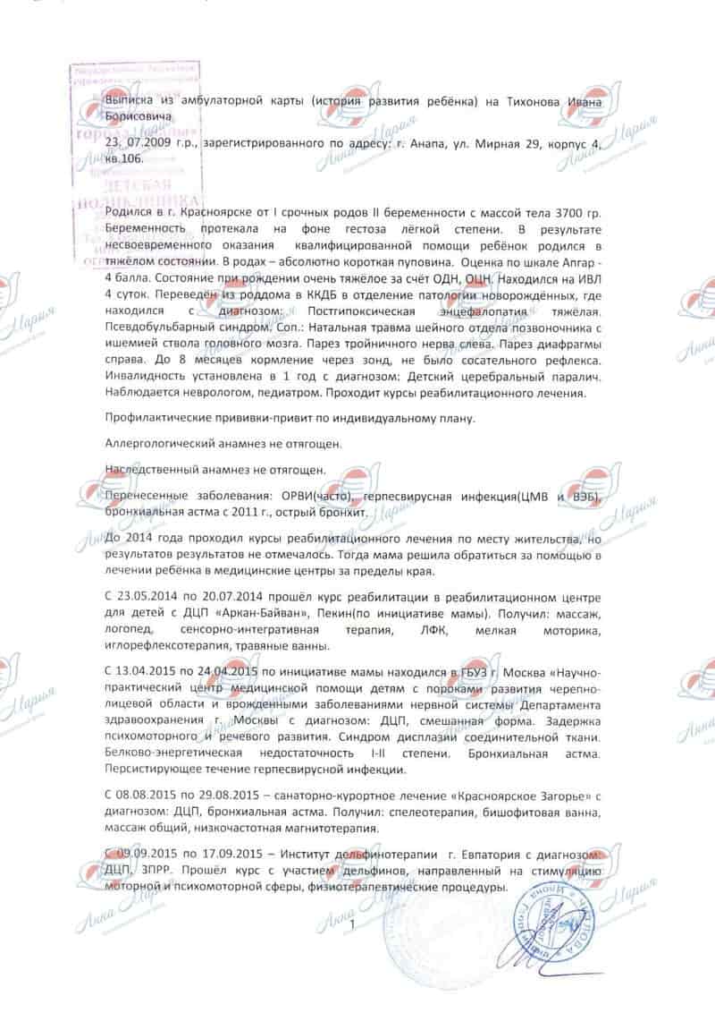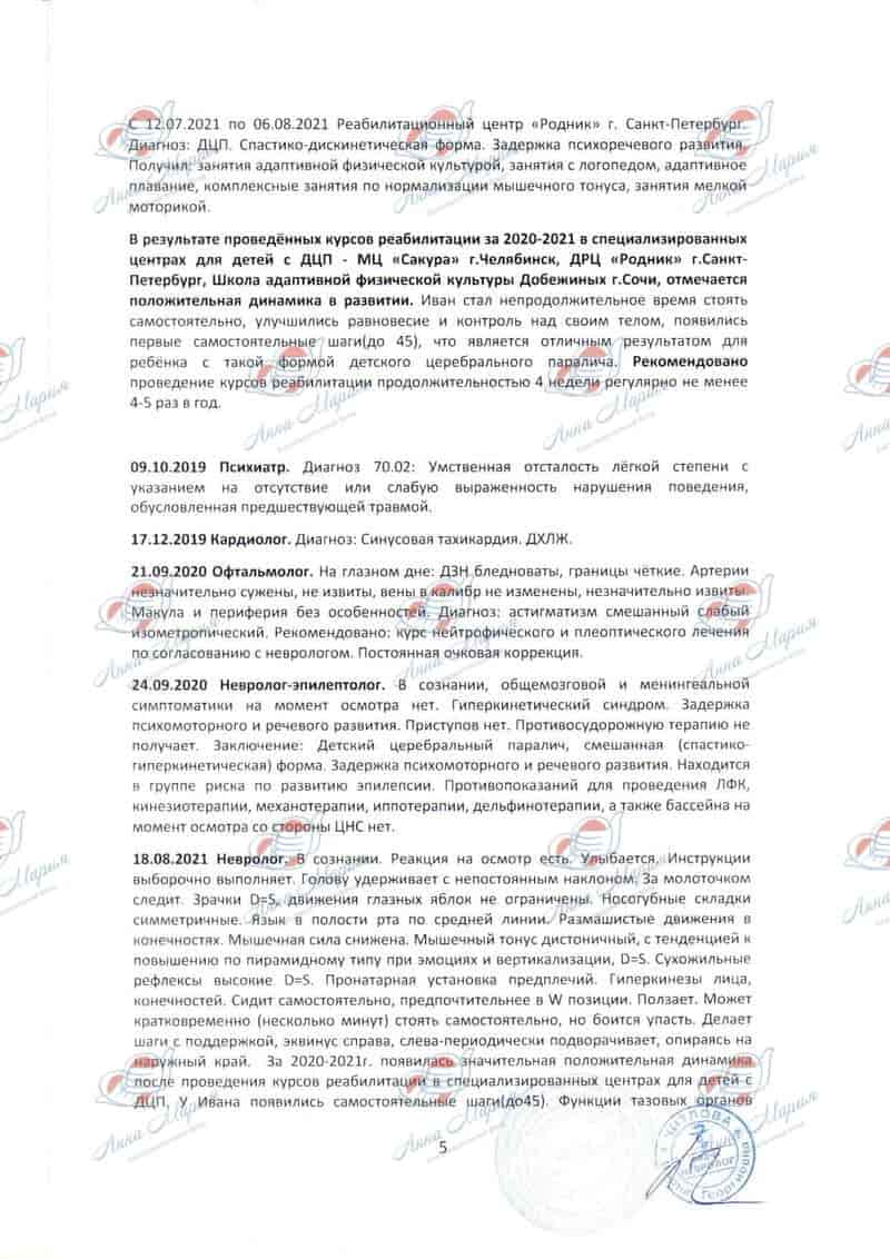 Постоянные обследования и лечение в стационарах продолжались до года. Все это время Ваня питался через зонд. В возрасте 1 года ребенку поставили диагноз ДЦП и множество сопутствующих заболеваний. В два года добавилась бронхиальная астма. С тех пор Ваня каждый день на препаратах.
