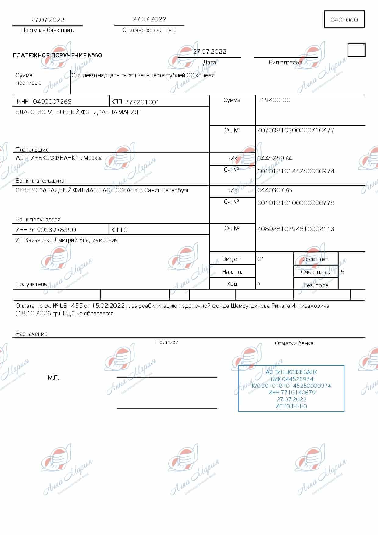 Трансплантация костного мозга в клинике «Медицинский центр Хадасса», Израиль, 255 000,00 долларов США. Частичный сбор – 5 000 000,00 (пять миллионов) рублей.